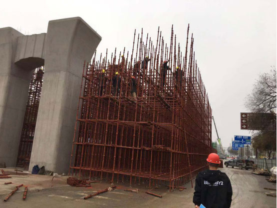 本項(xiàng)目全長1204.559m,其中橋梁全長684m,上跨武陵山大道節(jié)點(diǎn)274m,(4跨:55m+82m+82m+55m),為變高度全鋼箱梁;上跨天崇路節(jié)點(diǎn)橋梁110m(3跨:30m+50m+30m),為變高度預(yù)應(yīng)力混凝土連續(xù)梁;西側(cè)引橋長300m(10跨:10×30m),為等高度預(yù)應(yīng)力混凝土連續(xù)梁。子午橫斷面為50m,橋梁橫斷面為17.5m,該道路為城市主干道,雙向8車道,設(shè)計車速50km/h,橋梁使用年限100年,車行道采用瀝青混凝土路面,設(shè)計合理使用年限15年。