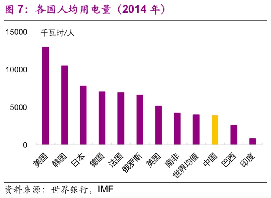 人均用電量則有所差異,部分西部資源輸出省份較高。排名前三的是寧夏(1.3萬(wàn)千瓦時(shí)/人)、青海(1.1萬(wàn)千瓦時(shí)/人)、內(nèi)蒙古(1.0萬(wàn)千瓦時(shí)/人)(圖37),而世界均值為0.4萬(wàn)千瓦時(shí)/人。