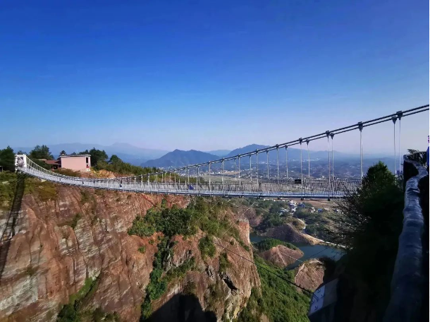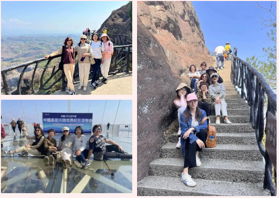 山勢陡峭而險(xiǎn)峻,山上峭壁錯列,怪石嶙峋,巨石斜聳突兀似牛角,順南或北的險(xiǎn)徑攀援而上,時(shí)而令人頭暈?zāi)垦?,時(shí)而令人心驚膽顫。娘子軍們氣定神閑、鼓舞加油,順利通過“玻璃棧道”、“玻璃大橋”等懸崖景點(diǎn),完成石牛寨一小步,征服內(nèi)心一大步。充分展現(xiàn)出長沙市政女職工激情拼搏、團(tuán)結(jié)協(xié)作的精神風(fēng)貌。